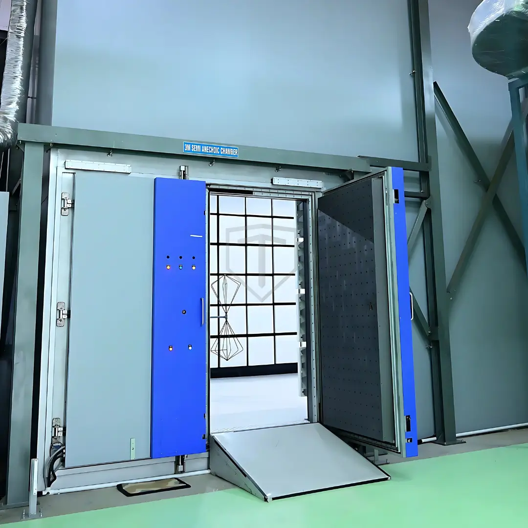 • Our standard semi-anechoic chambers, measuring 3 meters, are specifically engineered to Perform compliant emission and immunity test to wide range of standards. 3m semi-anechoic chamber (SAC) is well-suited for various commercial EMC testing applications.